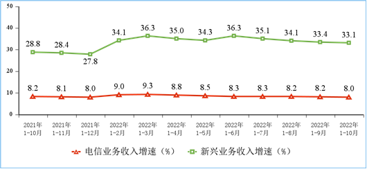 11月21日,工信部发布《2022年1-10月份通信业经济运行情况》。报告指出,1—10月份,信息通信行业运行平稳。电信业务收入保持稳步增长,电信业务总量较快增长;“物超人”步伐持续加大,5G、千兆光网等新型基础设施建设稳步推进;云计算等新兴业务快速增长,行业发展新动能不断释放。