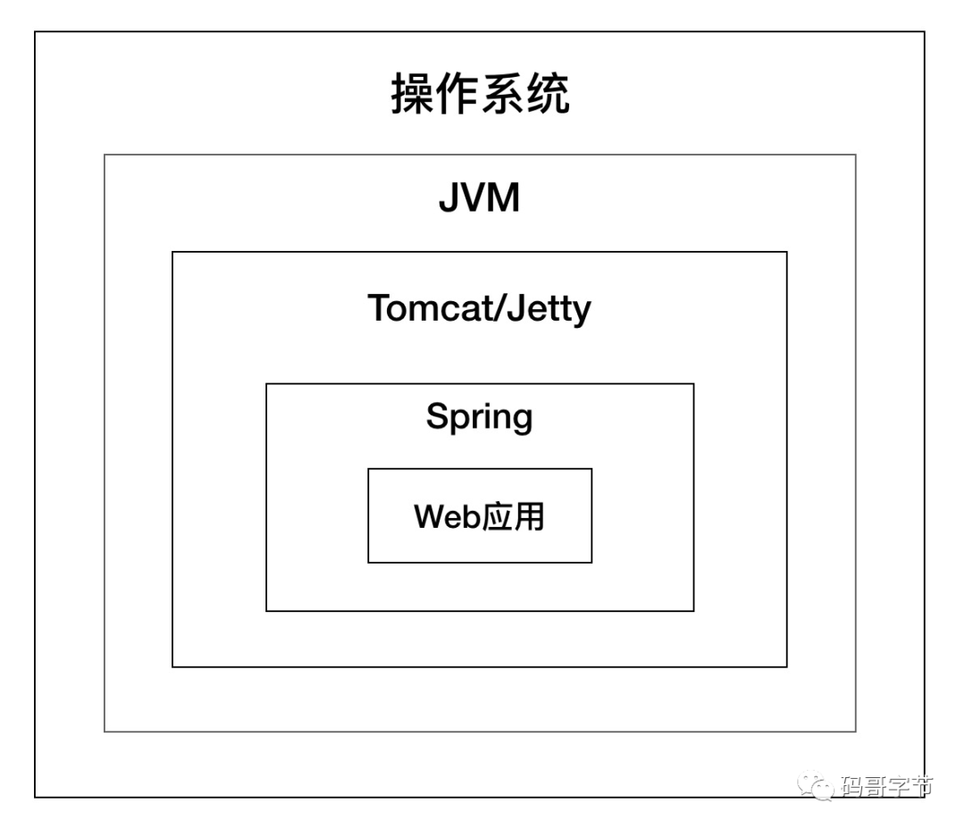 学习 Tomcat 的原理,我发现 Servlet 技术是 Web 开发的原点,几乎所有的 Java Web 框架(比如 Spring)都是基于 Servlet 的封装,Spring 应用本身就是一个 Servlet(DispatchSevlet),而 Tomcat 和 Jetty 这样的 Web 容器,负责加载和运行 Servlet。如图所示: