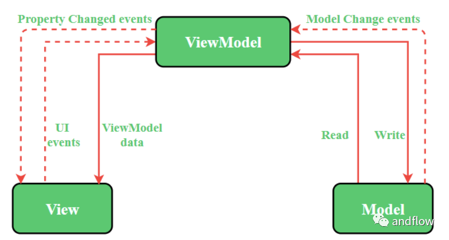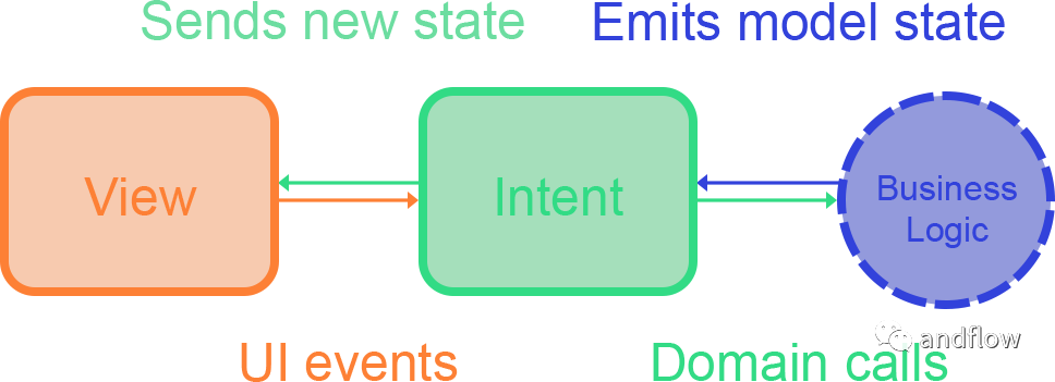 MVI与MVP和MVVM相比,它的设计模式考虑到了反应式编程。MVI模式的数据流是单向的,从Model到View。View不能直接修改状态,而是通过发送Intent到Model来更新状态并将其发送回View。
