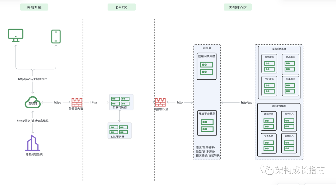 根据业务需求,提前整理系统网络开放策略清单,交由相关人员进行配置,比如系统 A 内网访问,系统B外网访问,如下图