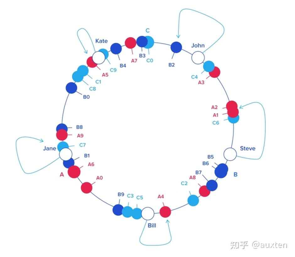 在数据量超过单机承载的能力后,我们一般都会对内容进行分布式的存储。对内容 ID 进行哈希(Hashing)并对节点数N取模可以有效的对大量数据进行均匀分布,但当对节点数进行扩容(例如 N+1)会对原有的哈希分布产生很大的扰动。Consistent Hashing 比较完美的解决了这一问题: