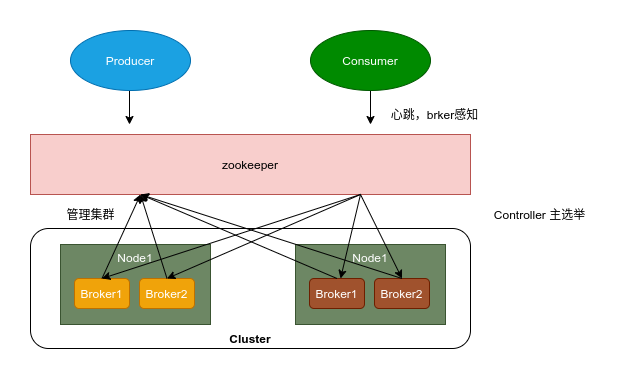 - Broker 注册:Broker 是分布式部署并且之间相互独立,Zookeeper 用来管理注册到集群的所有 Broker 节点。