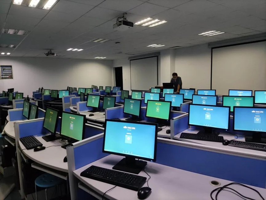 正当程主任为此苦恼不已时,锐捷三擎云桌面方案走进了学校的视野。为了解决这些痛点问题,学校决定尝试引入锐捷三擎云桌面解决方案,看能否解决学校的信息化难题。在锐捷云桌面团队的帮助下,学校的计算机教室开始了云化改造。从最初的4间教室试点,到现在的48间教室,逐步扩大应用范围,如今云桌面机房数已经占据了学校计算机教室的半壁江山。