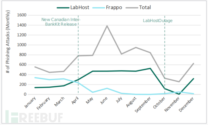 Fortra 在跟踪网络犯罪分子的活动后报告说,LabHost 已经超越了之前的 PhaaS 平台 Frappo,LabHost 现在成为了针对加拿大银行客户的大多数网络钓鱼攻击背后“助力”。