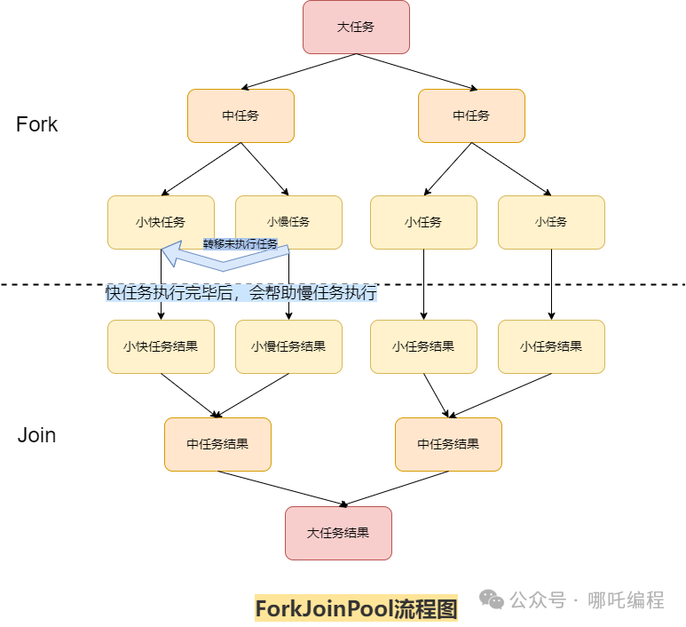 ForkJoinPool在于可以充分利用多核CPU的优势,把一个任务拆分成多个小任务,把多个小任务放到多个CPU上并行执行,当多个小任务执行完毕后,再将其执行结果合并起来。
