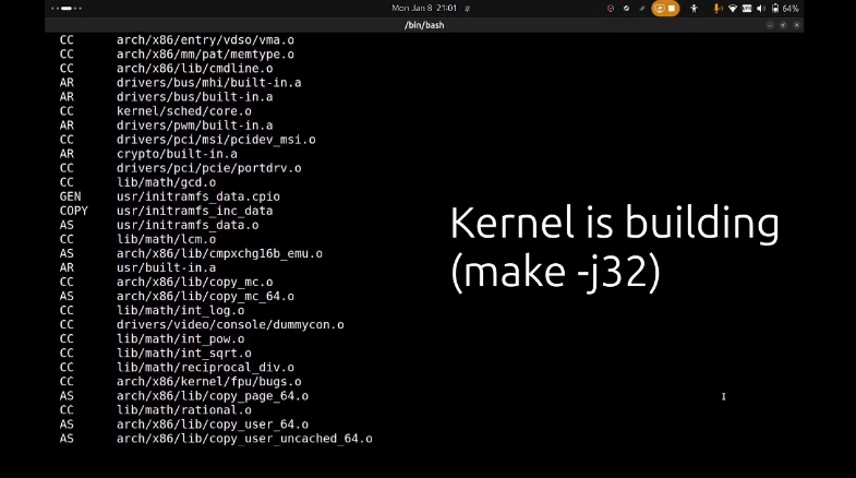 他还分享了一段视频:一个简单的电脑游戏Terraria正常运行,同时该机器正在后台进行内核编译。