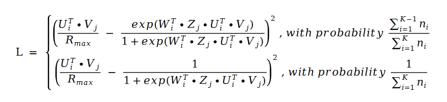 下面我们看一下 LogitMat 算法。这个算法的损失函数结合了逻辑回归和矩阵分解: