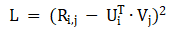 要想理解这些算法,就必须先理解矩阵分解算法。所谓矩阵分解算法,就是利用用户特征向量和物品特征向量的点乘来最大程度的近似用户物品评分。矩阵分解的损失函数如下: