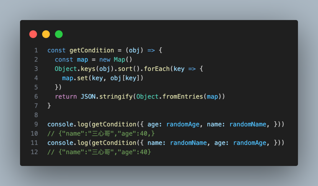 所以我们需要对条件对象进行排序,要保证这两个条件匹配到同一个函数,怎么做呢?我们要让他们顺序保持一直就行了!!需要利用到 Map 这个数据结构,Map 的 key 是有顺序的~