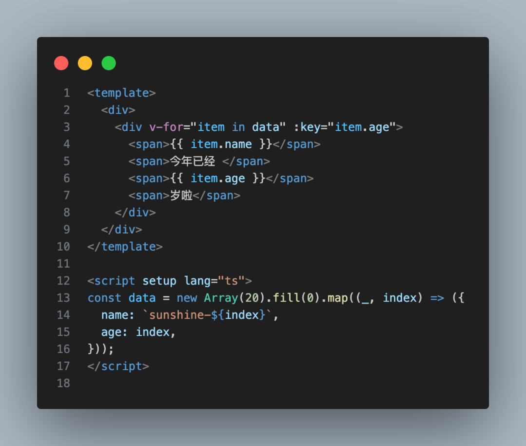 其实就是一个普通的不能再普通的循环遍历渲染的案例,咱们往下接着看,如果这样的遍历在同一个组件里出现了很多次,比如下方代码: