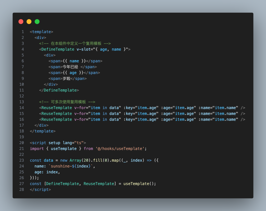 那么有没有办法,可以不抽取成组件呢?我可以在当前组件里去提取吗,而不需要去重新定义一个组件呢?例如下面的效果: