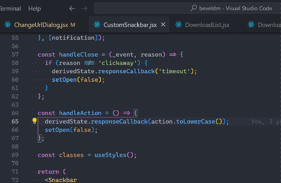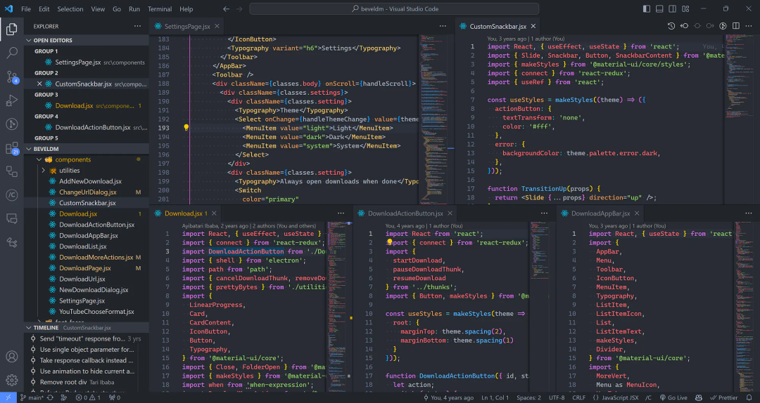 VS Code 还在时间轴视图或源代码控制中使用分割视图,来显示不同文件版本之间的更改。
