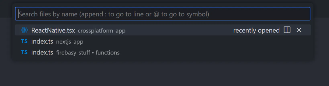 使用 Ctrl + P 或 Ctrl + Shift + F 搜索文件时,将应用于所有文件夹中的所有文件: