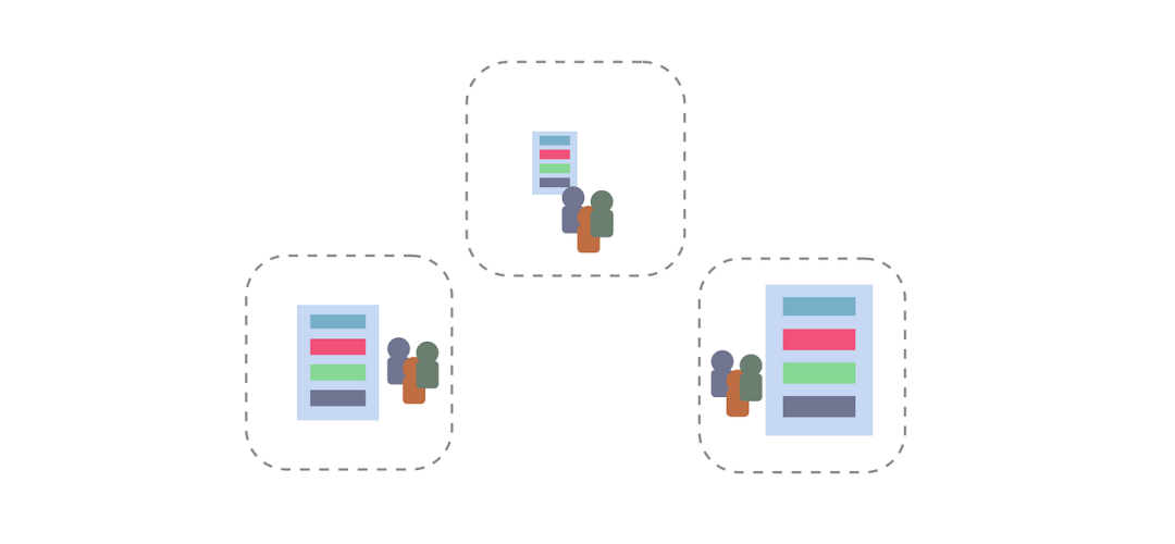 当您的团队看起来像上面的插图时,这表明您应该考虑演进您的架构到微服务。开发中的复杂性增加会高风险地降低质量,从而导致生产力减缓。这产生了一个矛盾的效果,即您雇佣的人越多,交付就变得越慢和不可预测。