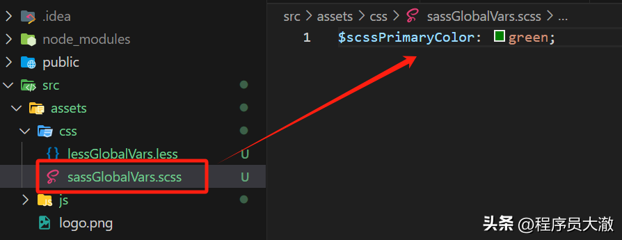 新建公共scss变量文件,在其中定义所需要的全局变量,用$定义。