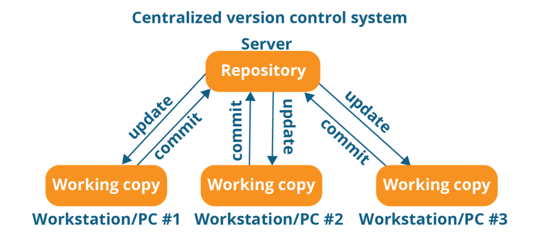 集中式版本控制系统,版本库是集中存放在中央服务器的。工作时,每个人都要先从中央服务器获取最新的版本。完成之后,再把自己添加/修改的内容提交到中央服务器。所有文件和历史数据都存储在中央服务器上。SVN 是最流行的集中式版本控制系统之一。