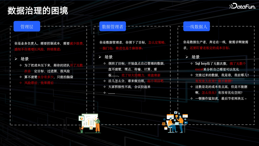 数据治理的困境,可以从面向的不同用户的不同场景来看: