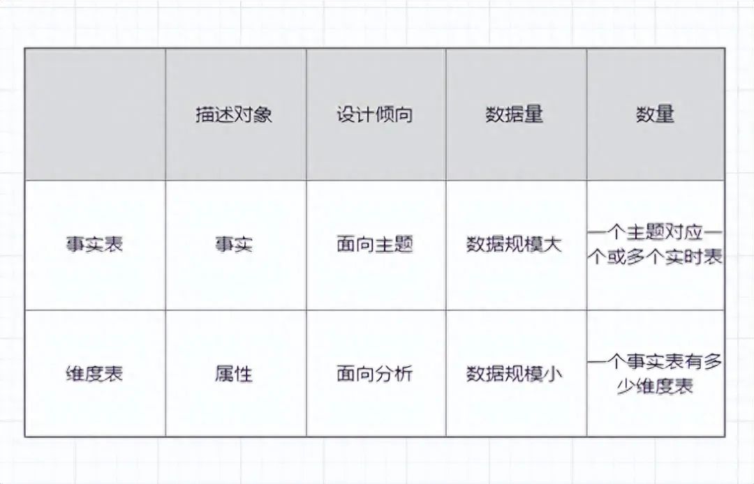 事实表描述业务过程的度量、以可加数据为主题,每一行代表一个可以观察的实体或事件。主要的是发生了业务过程,如卖出一件商品,用户购买一件商品,这都触发了业务过程。卖出的商品有商品属性、有卖出的门店、有出货记录,有购物者信息等等。