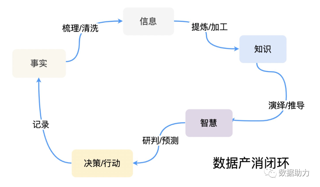 现实世界中,我们可以把数据的生命周期抽象成5个部分:“事实->信息->知识->智慧->决策&行动->回到 事实”。下面给出我个人理解的每个部分的含义:事实:在实际生活中,原始的数据通常被视为“事实”,这些数据往往庞大、复杂且冗余。为了提取出真正有用的信息,我们需要对这些事实进行清洗和整理。