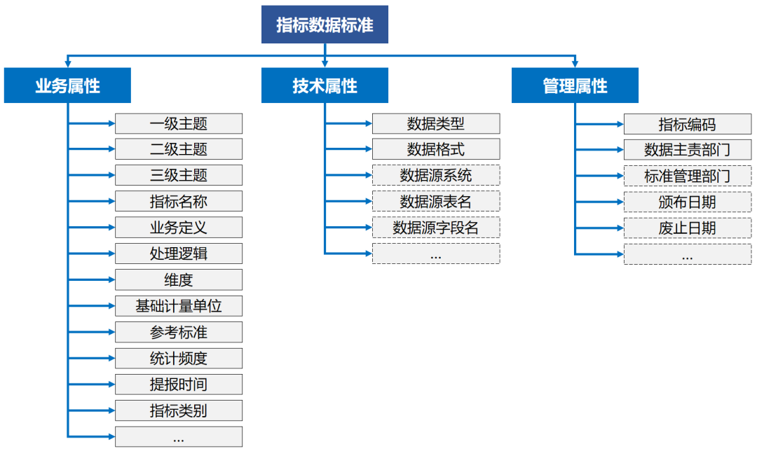 技术属性:是指标数据在技术层面的定义,描述了数据与信息技术实现相关联的特性,是数据在信息系统项目实现时统一的技术方面定义。