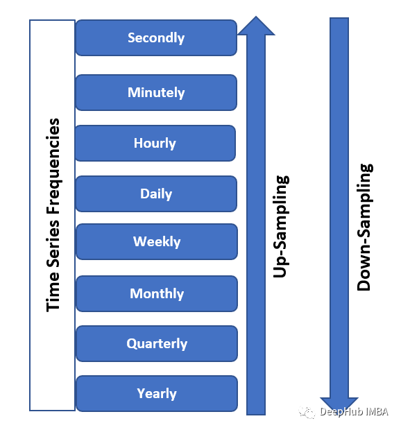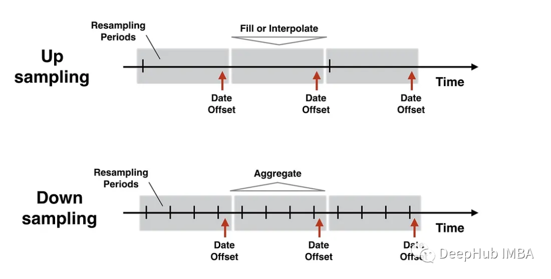 下采样包括减少数据的频率或粒度。将数据转换为更大的时间间隔。