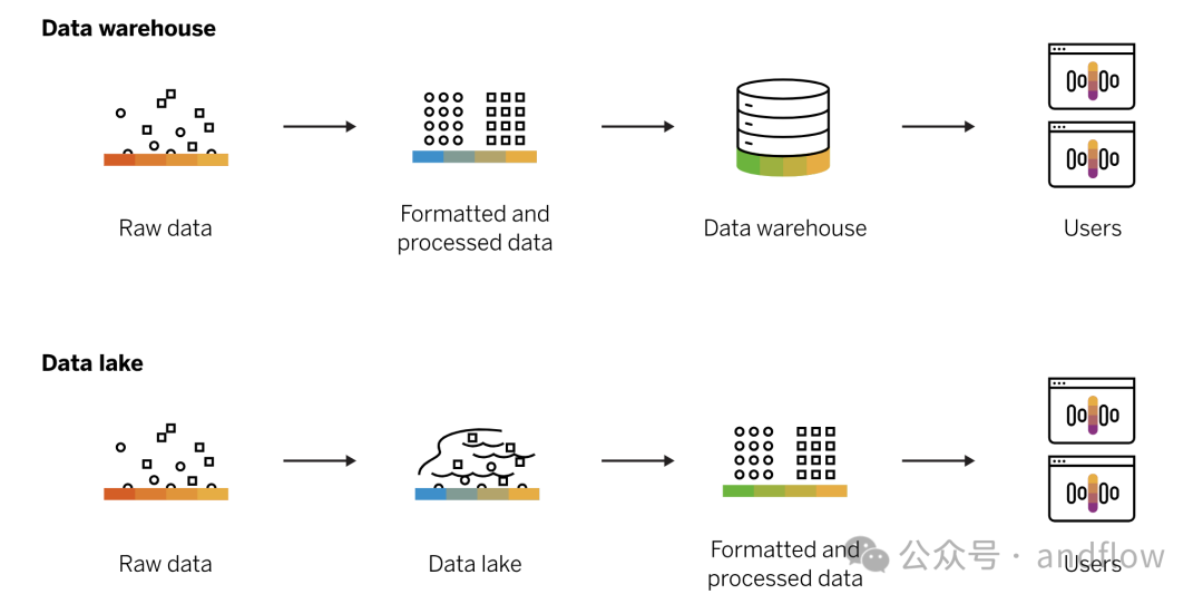 相反,数据仓库存储的内容为特定用例正确建模和组织的结构化数据。结构化数据一般是预定义好的数据模型,适用于传统关系数据库的数据。