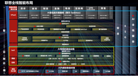 基础设施方面,为顺应快速爆发的大模型训练及其后更大量的推理需求,联想在中国已完成绝大多数GPU技术的产品布局或适配,初步形成全栈AI服务器产品矩阵,并连同先进存储、数据网络、超融合、高性能计算以及正在开发的异构算力调度平台,能够为客户提供智能算力中心方案,此外也提供包括边缘AI平台及边缘AI服务器在内的边缘基础设施解决方案。今年以来,联想AI导向基础设施产品组合不断添加“主力军”,今年2月,联想问天服务器品牌发布,形成联想问天+联想ThinkSystem的双品牌战略;今年8月,联想发布了“AI赋智 绿色赋能”AI算力战略和两款联想问天AI服务器,加码算力筑基智能化转型;今年12月,联想发布了率先搭载第五代英特尔?至强?可扩展处理器的联想问天G3和联想ThinkSystem V3系列产品,进一步丰富了联想算力基础设施从云到边缘场景的覆盖,为千行百业智能化转型进一步筑牢了“算力基石”。