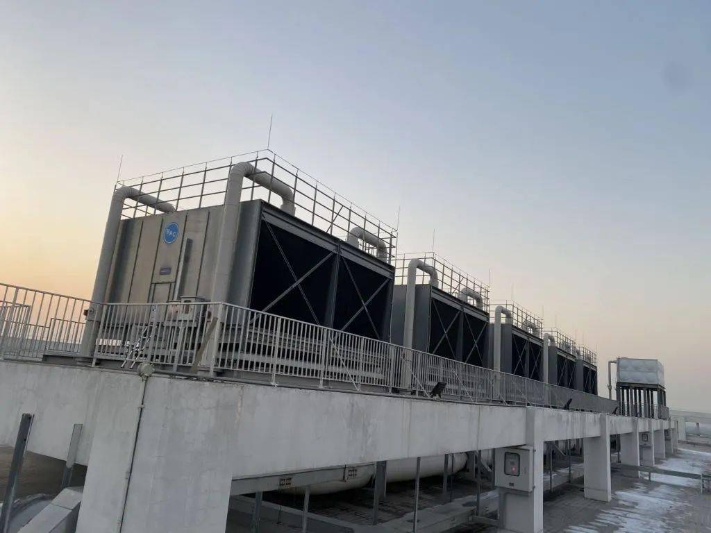 无论是风冷,还是液冷,吉利科技(长兴)数据中心机房产生的热量,最终都会通过冷却系统传递到位于楼顶的冷却塔里,经历最后的散热和冷却。