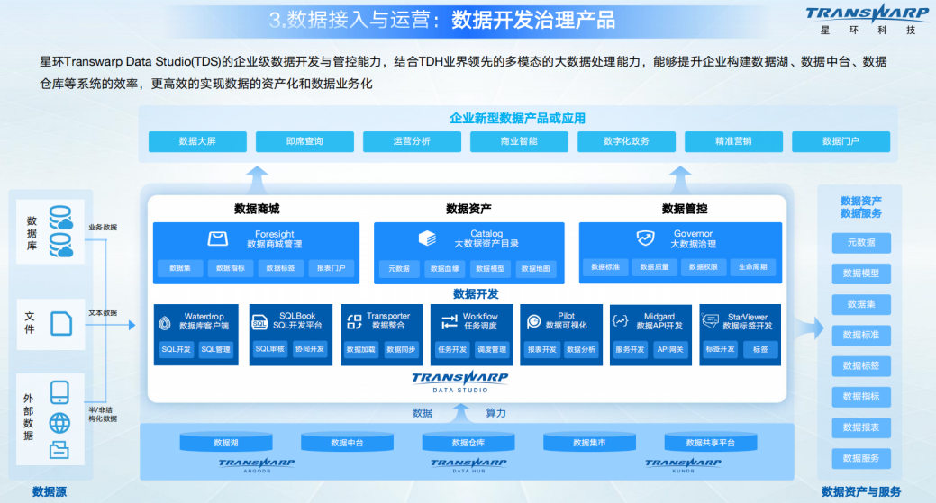 基于2.0已经存在的数据底座,建设统一的数据治理构建数据资产,统一数据服务激活数据价值,最终让企业高效数据驱动,适配企业个性化主营、创新、孵化业务等数据应用的快速变化,支撑企业数字化转型。