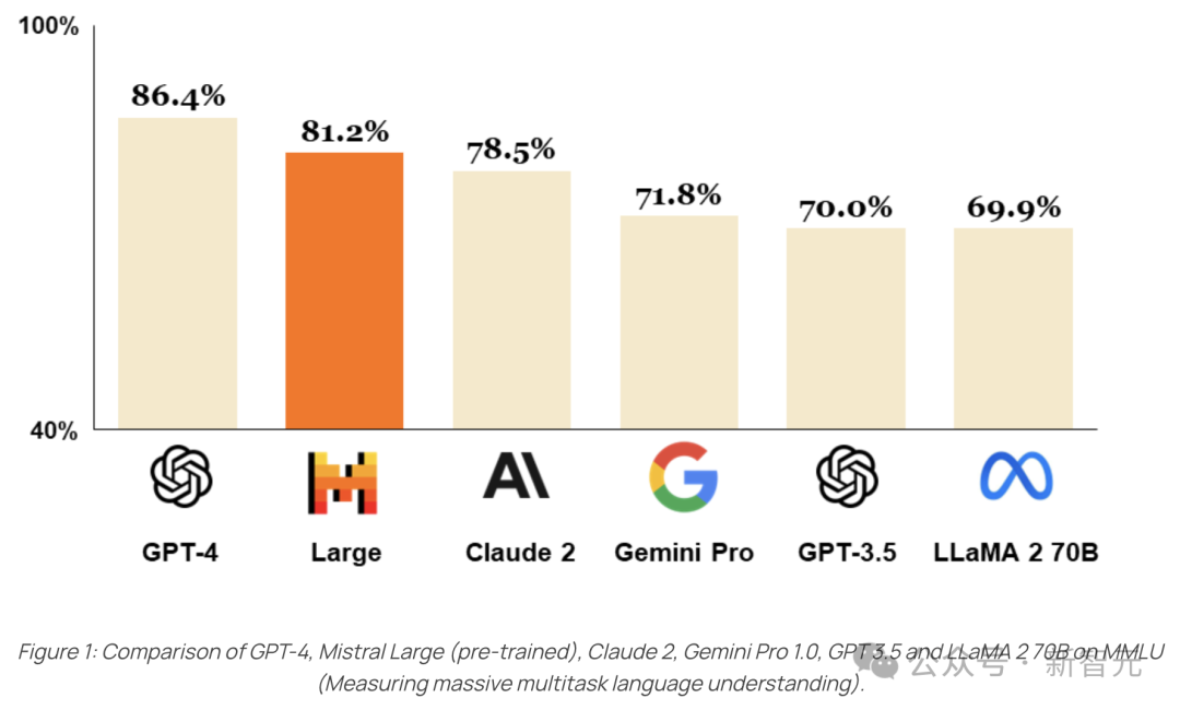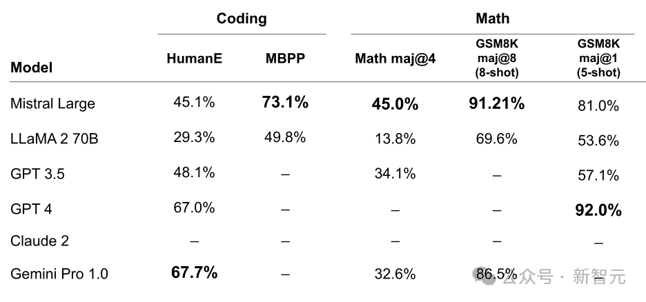 在众多主流基准测试中,Mistral Large力压Anthropic的Claude 2和谷歌的Gemini Pro,成绩仅次于GPT-4!