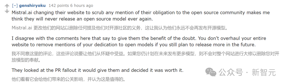 有网友发现Mistral修改了网站内容,删除了所有提及开源社区义务的内容,这立马引发了恐慌!
