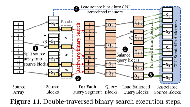 本文提出了一种新颖的分段排序双遍历二分搜索算法来在 SC 中构建内核映射。本文提出的算法高度利用了 GPU 的 on-chip 内存层次结构。本文还在 Gather 和 Scatter 操作中动态选择性能最佳的 tile 大小,并在对 GEMM 操作进行聚合(group)之前重新排序,以最大程度地减少不必要的数据访问和计算。
