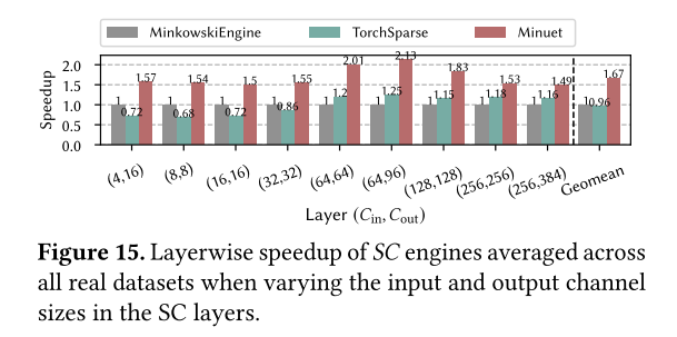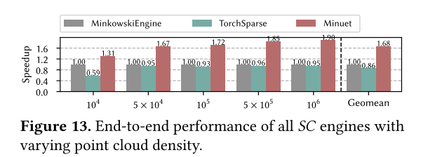 本文使用广泛的真实数据集、稀疏 3D 网络和 GPU 架构来评估 Minuet,并表明它在分层和端到端执行方面都显着优于先前的工作。Minuet 还在 SC 的 Map 步骤中提供了卓越的加速。