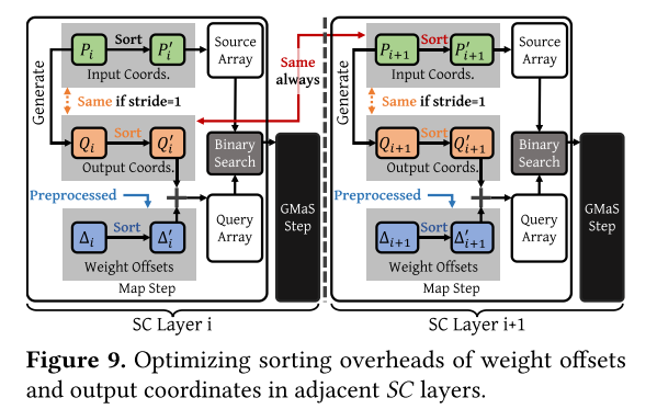 图 9. 优化相邻 SC 层中权重偏移和输出坐标的排序开销。