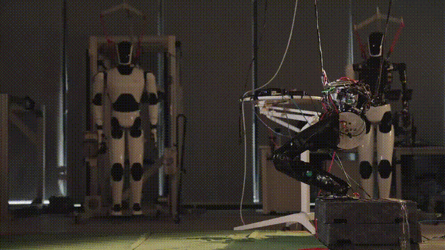 虽然还未装上上半身,仅有两足的机器人一个翻转后,稳稳地立在那里,不输Atlas。