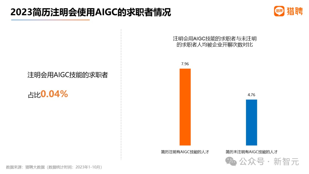 而在简历中注明自己会用AIGC工具的求职者,被企业开聊的次数平均为7.95次,显著高于未注明的4.76次。