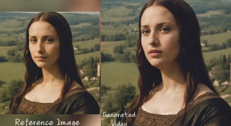 画面中 AI 生成的蒙娜丽莎,正站在她那神秘、幽静的山峦之间,远处是无际的绿植与道路。置身于这样的美景之间,蒙娜丽莎情不自禁地唱起麦莉·赛勒的《flowers》。唱到陶醉之时的蒙娜丽莎不仅会流露自信的笑容,还间或闭上眼睛,完全沉醉在歌唱之中,给人非常真实的视听体验。