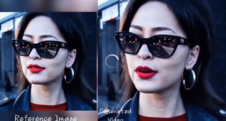 Sora 视频中那位走在巴黎街头的皮衣女士也来体验了一把 EMO 的生成效果。在该视频中“Sora 女士”不仅头部运动自然,发力时眉毛的运动及换气的感觉也都让人十分惊喜。此外, EMO 对于耳环的摆动、甚至墨镜中反光的倒影也进行了较为逼真的还原。