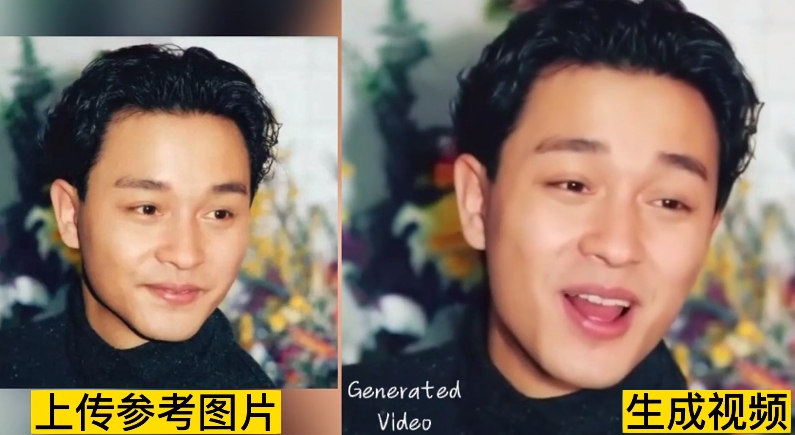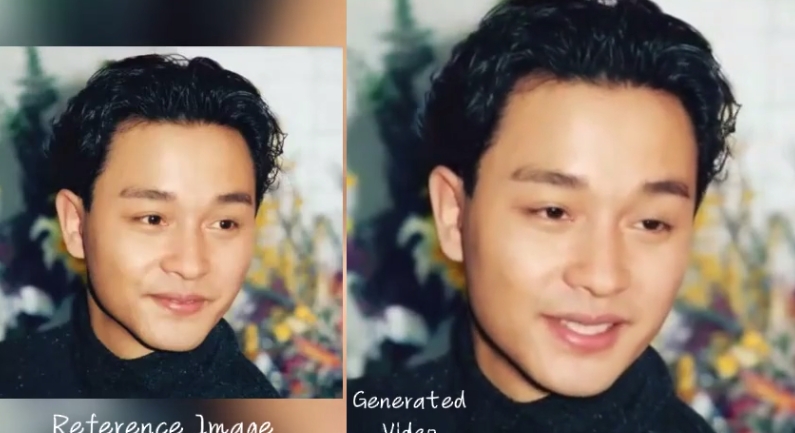 画面中的“哥哥”张国荣正唱着 Eason 的那首《无条件》。有网友认为,这支视频暴露了EMO 在跟随粤语时生成的口型不够自然。不知道大家欣赏这支视频时,是否会有“音画不同步”的感觉。当然,这支视频中哥哥愉悦的积极情绪与《无条件》歌词的情感基调有断裂,这可能也是让我们感到“哪里不对”的原因之一。