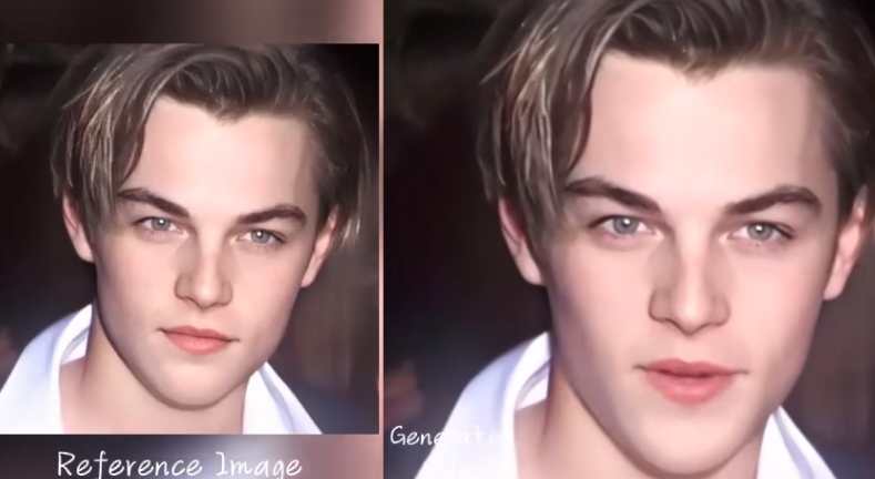 视频中还没成为中年大叔的貌美版“小李子”,正唱着阿姆的《GODZILLA》。从驱动视频来看,肖像人物的表情与说唱的节奏配合自然,中间停顿时的神情也极具感染力。