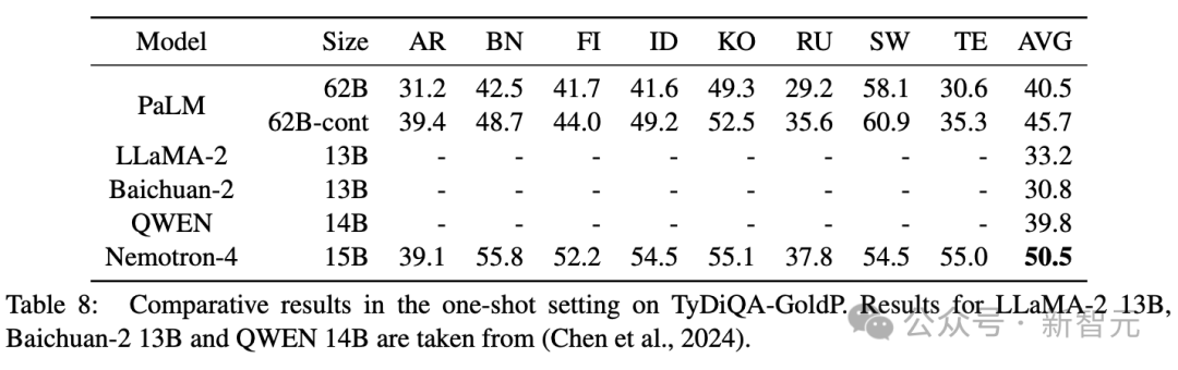 令人印象深刻的是,Nemotron-4 15B能够显著改进下一个最佳模型PaLM 62B-cont。