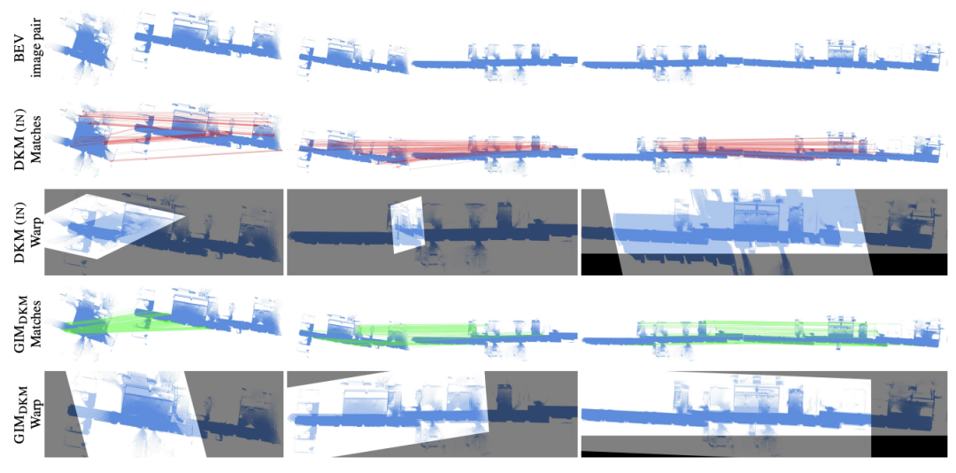 除此之外,如图 7 所示,GIM 模型强大的泛化性能还可以处理训练中从未见过的点云鸟瞰图匹配任务。