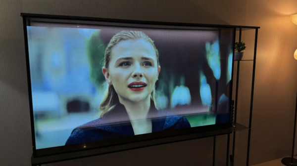 首先,我们来看77 英寸的Signature OLED T透明电视。LG方面表示,其新款Signature OLED T是全球首款无线透明OLED电视,透明屏幕上显示的内容仿佛漂浮在空中,给用户带来创造一种身临其境的观看体验。