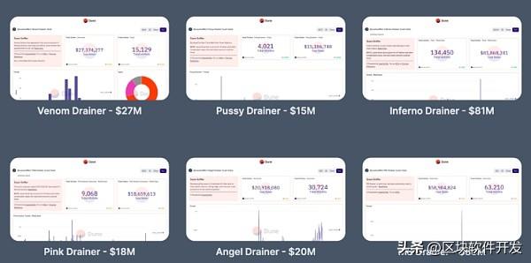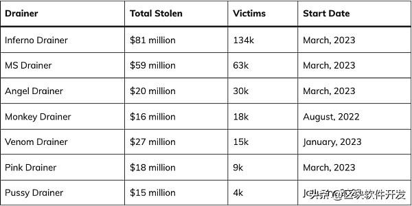 规模和速度都在惊人地升级。例如,Monkey在 6 个月内吸走了 1600 万美元,而Inferno Drainer则明显超过这一数字,在短短 9 个月内吸走了 8100 万美元。
