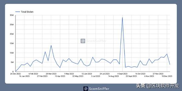 在过去的2023年,Scam Sniffer监控到这些钱包盗贼(Wallet Drainers)从约 32.4万名受害者那里窃取了近 2.95 亿美元的资产。