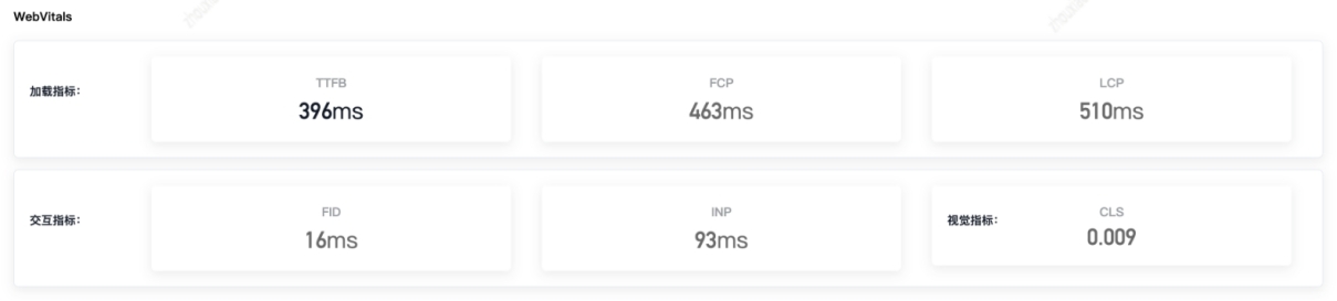 首先,我们采集了 web- vitals 六个指标,效果如下: