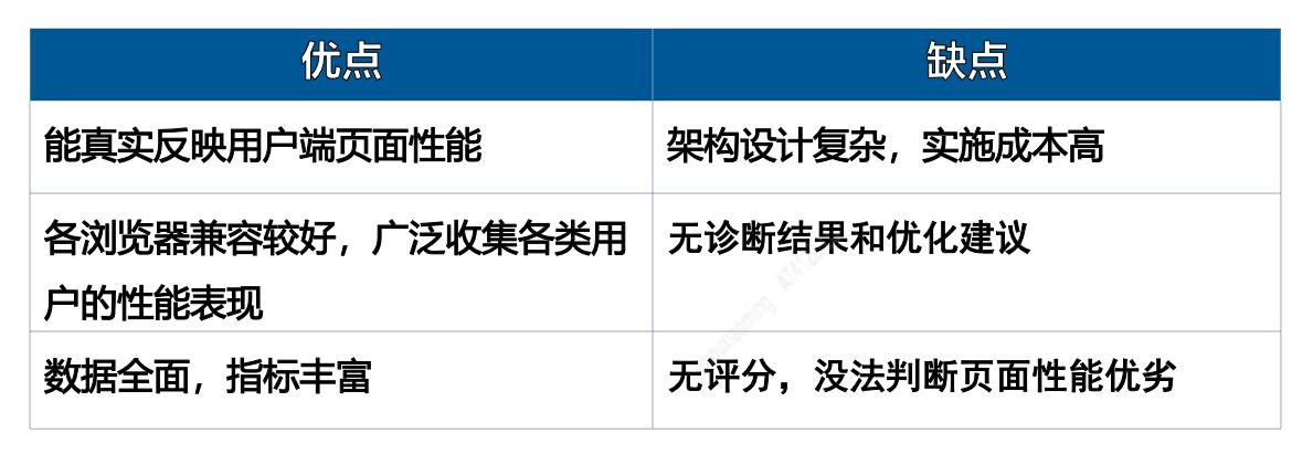 顾名思义,指监控运行在真实用户终端(浏览器),采集用户运行页面时候真实的性能指标。业内技术方案主要分为两种: