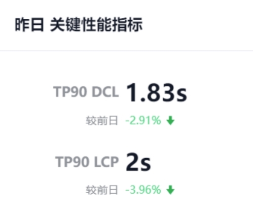 TP90 代表 90%用户的体验下限,与 AVG、TP50、TP75 比,覆盖和统计更广的用户,还能屏蔽页面在手机端特殊网络环境下,产生的少数脏数据,更具有代表性。