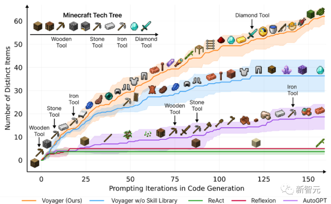不过,虽然Voyager能够在新的Minecraft世界中利用学到的技能库从零开始解决新颖任务,但其他技术则难以泛化。