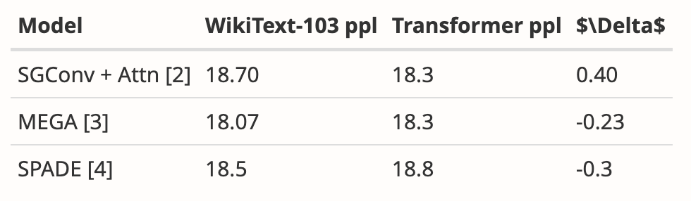 作者分析了多篇论文的结果,表明 Mamba 在 WikiText-103 上的表现明显优于其他 20 多个最新的次二次序列模型。